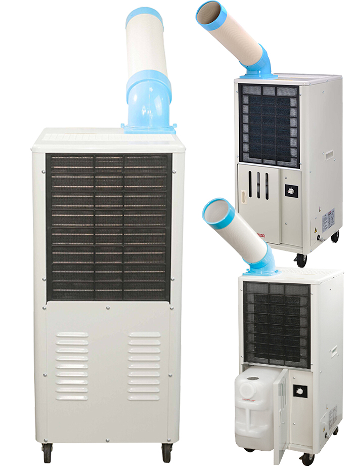 3、需要通风、无法封闭的工作场降温,如:室外展会场,酒店后场,工地等整体空间安装空调困难的场所,给工作人员祛降温,提供凉爽舒适的工作环境