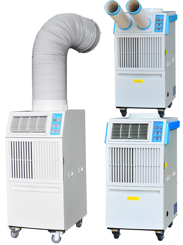 3.需要通风、无法封闭的工作场降温,如:室外展会场,酒店后场,工地等整体空间安装空调困难的场所,给工作人员祛降温,提供凉爽舒适的工作环境.